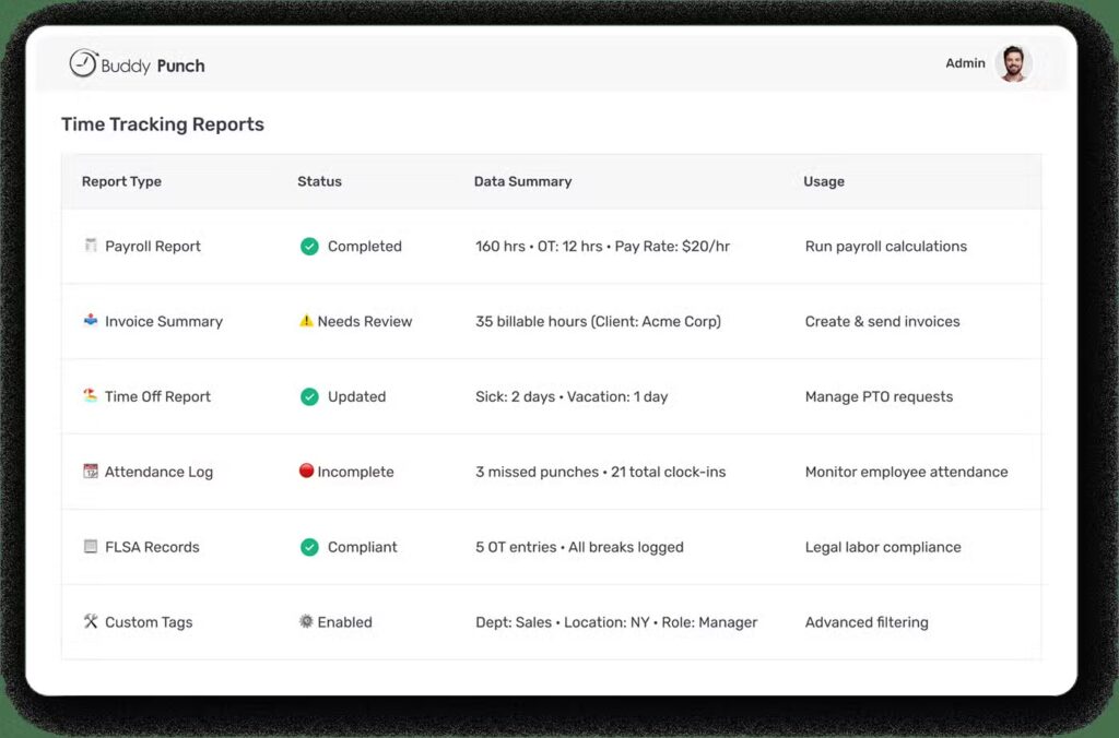 Buddy Punch is a workforce management platform that combines time tracking, scheduling, attendance, and PTO management into one system. While it’s often used as a time clock tool, its vacation and leave tracking features are strong enough to make it a solid alternative for companies that want an all in one solution.