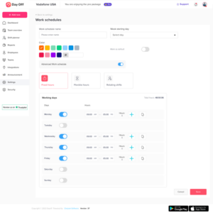 Diverse Scheduling: Whether your team works a standard 9-to-5, flexible hours, or complex rotating shifts, Day Off now maps perfectly to their reality.