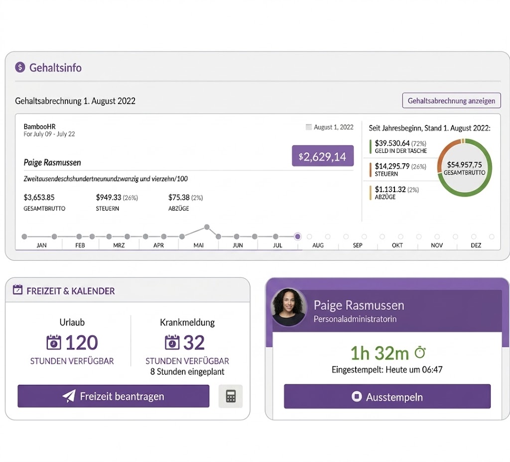 - Urlaubs- und Anwesenheitsverwaltung: Bietet umfassende Tools zur Verfolgung von Urlaubsguthaben, Feiertagen und Anwesenheitsaufzeichnungen.