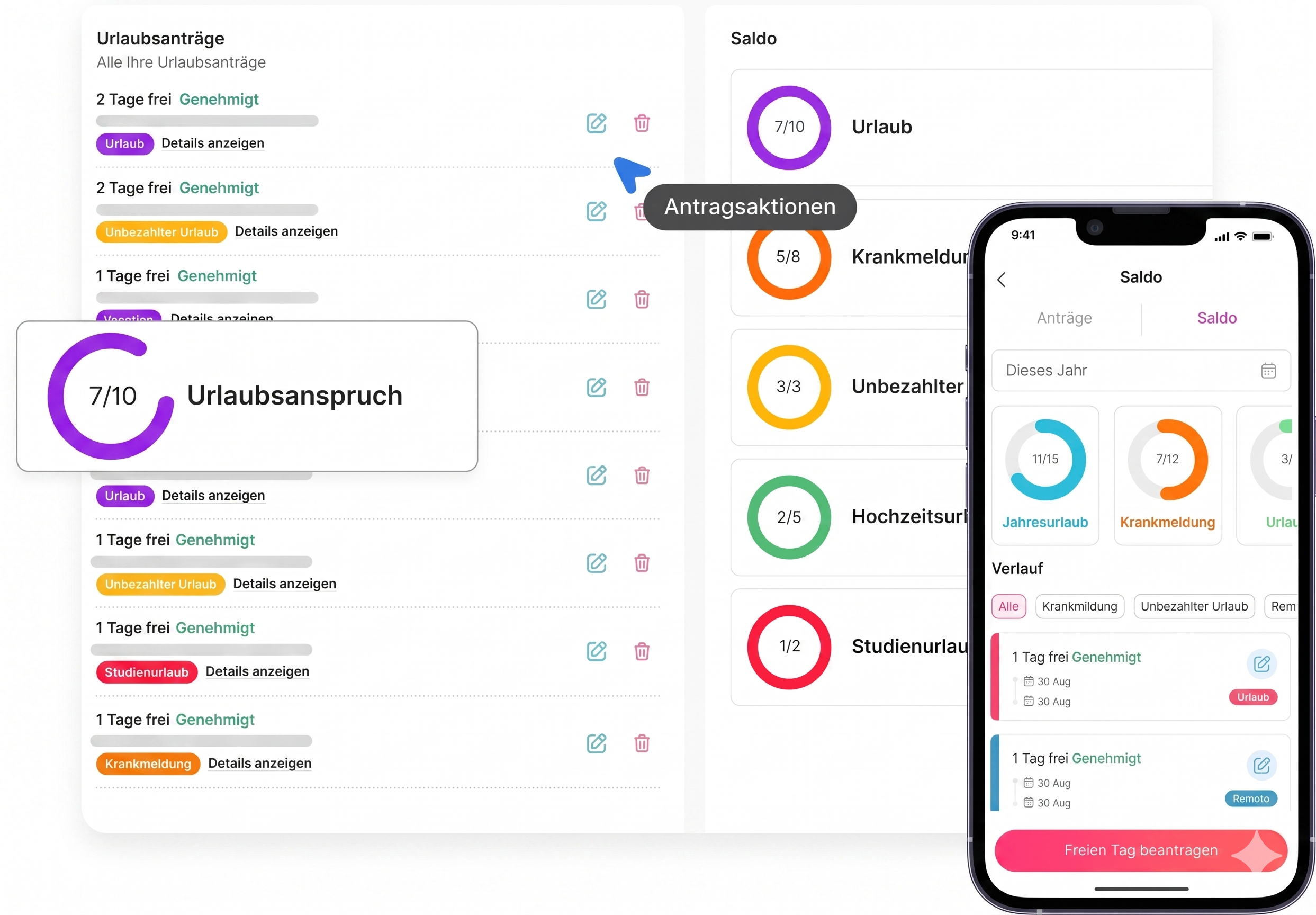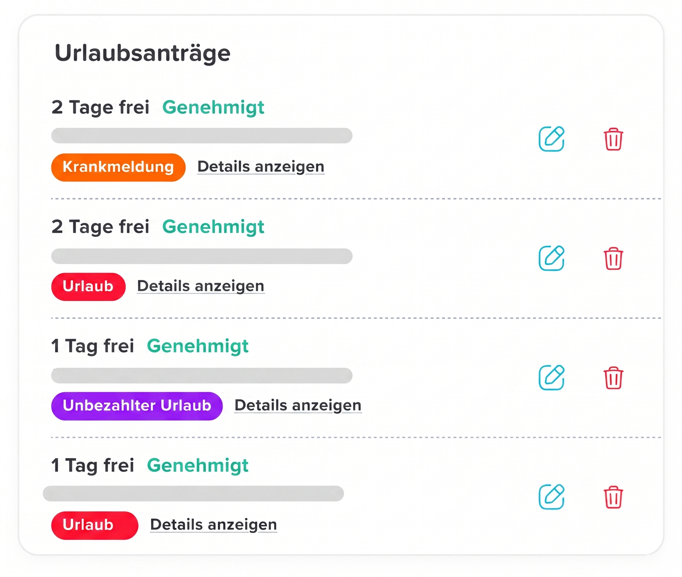 Verwalten Sie Mitarbeiteranfragen ganz einfach, indem Sie diese genehmigen, bearbeiten oder löschen – und profitieren Sie dabei von detaillierten Berichten für vollständige Transparenz und Kontrolle!