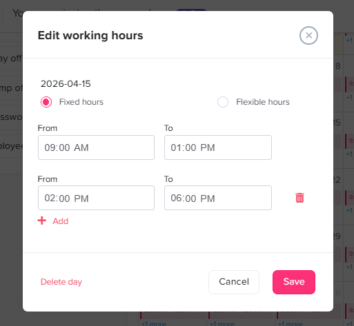 Einen arbeitsfreien Tag in einen Arbeitstag umwandeln: Fügen Sie Arbeitszeiten zu einem Tag hinzu, der normalerweise als Wochenende oder arbeitsfreier Tag geplant ist.