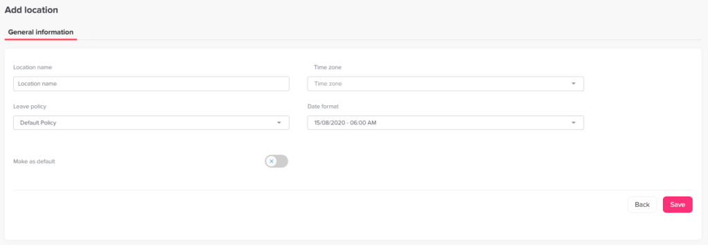 Sie können ganz einfach den Hauptstandort Ihres Unternehmens hinzufügen und im Pro-Tarif mehrere Standorte in Day Off hinzufügen, um Ihre Mitarbeiter nach Büros, Ländern oder Regionen zu organisieren.