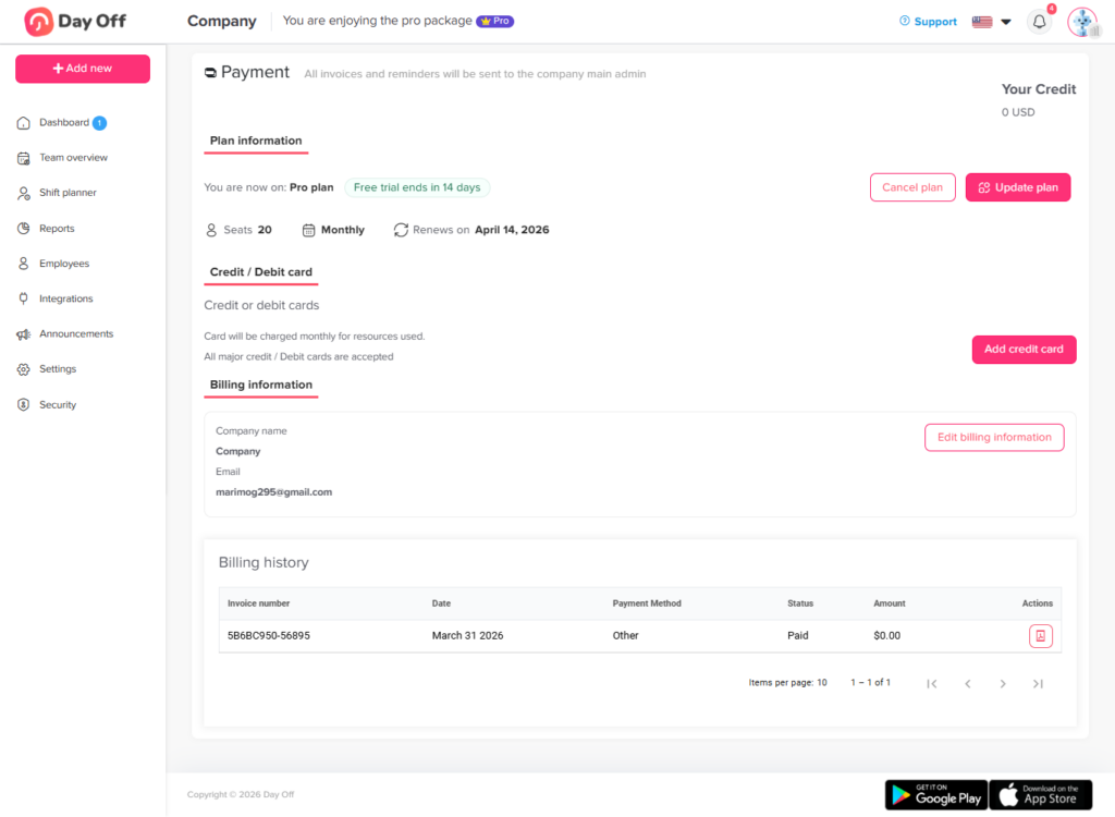 - Wählen Sie aus, ob Sie Ihren Abrechnungszyklus von jährlich auf monatlich oder umgekehrt ändern möchten.