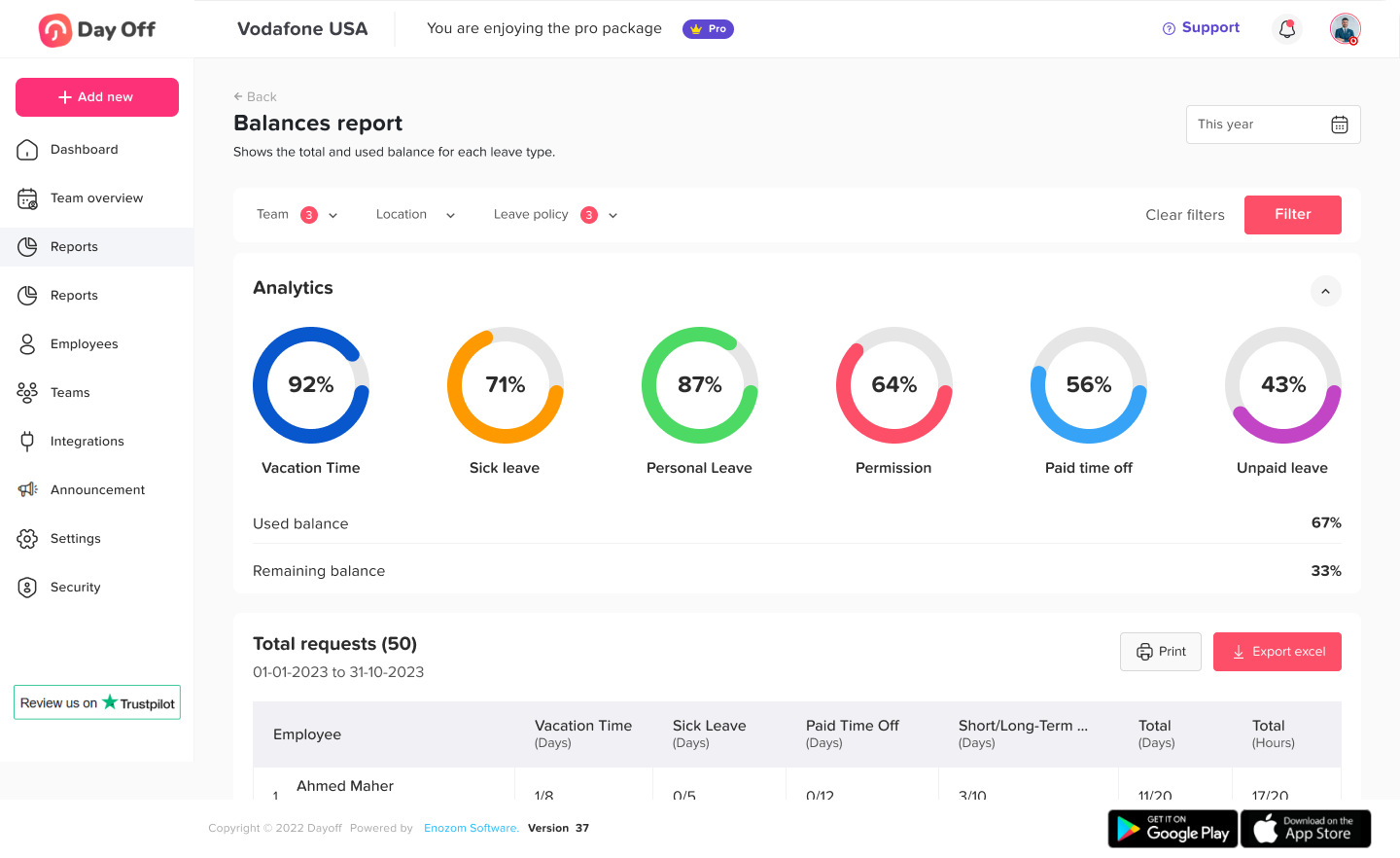 Data-driven teams need visibility beyond the calendar. Day Off provides actionable insights into leave trends and workforce availability.