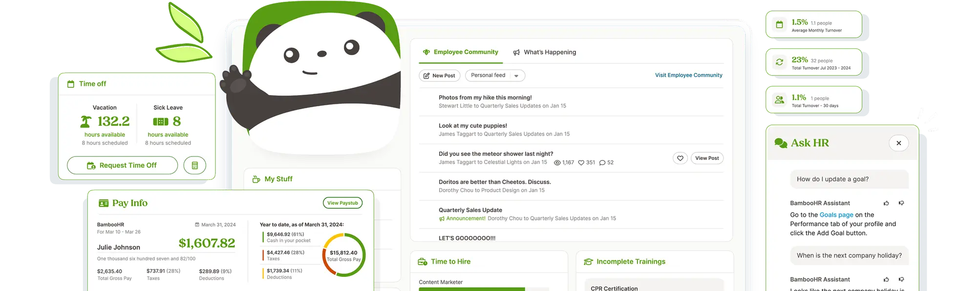 BambooHR’s biggest strength is centralization. It connects employee records, onboarding workflows, payroll data, benefits administration, and performance management into one cohesive system. Because leave tracking is embedded within that ecosystem, PTO balances, accruals, and time-off history naturally tie into employee profiles and reporting dashboards.