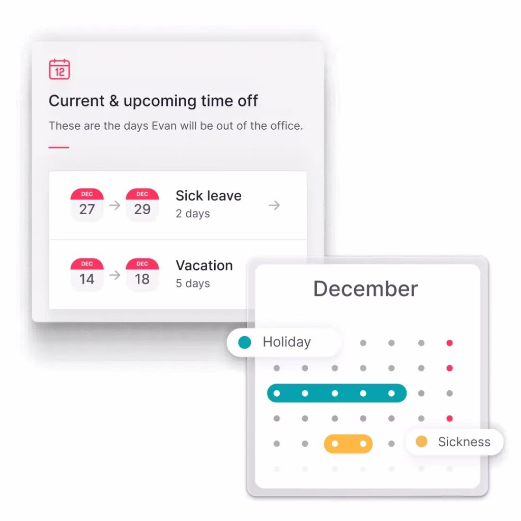 Reporting features allow HR teams to generate overviews, identify patterns in absence trends, track seasonal peaks, and ensure compliance with company policies. This data is helpful for resource planning, budgeting, and understanding team wellness.