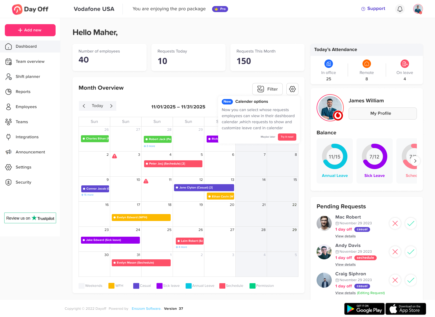 Day Off also supports full day and partial day absences, enabling organizations to apply flexible working arrangements without losing control over attendance tracking.