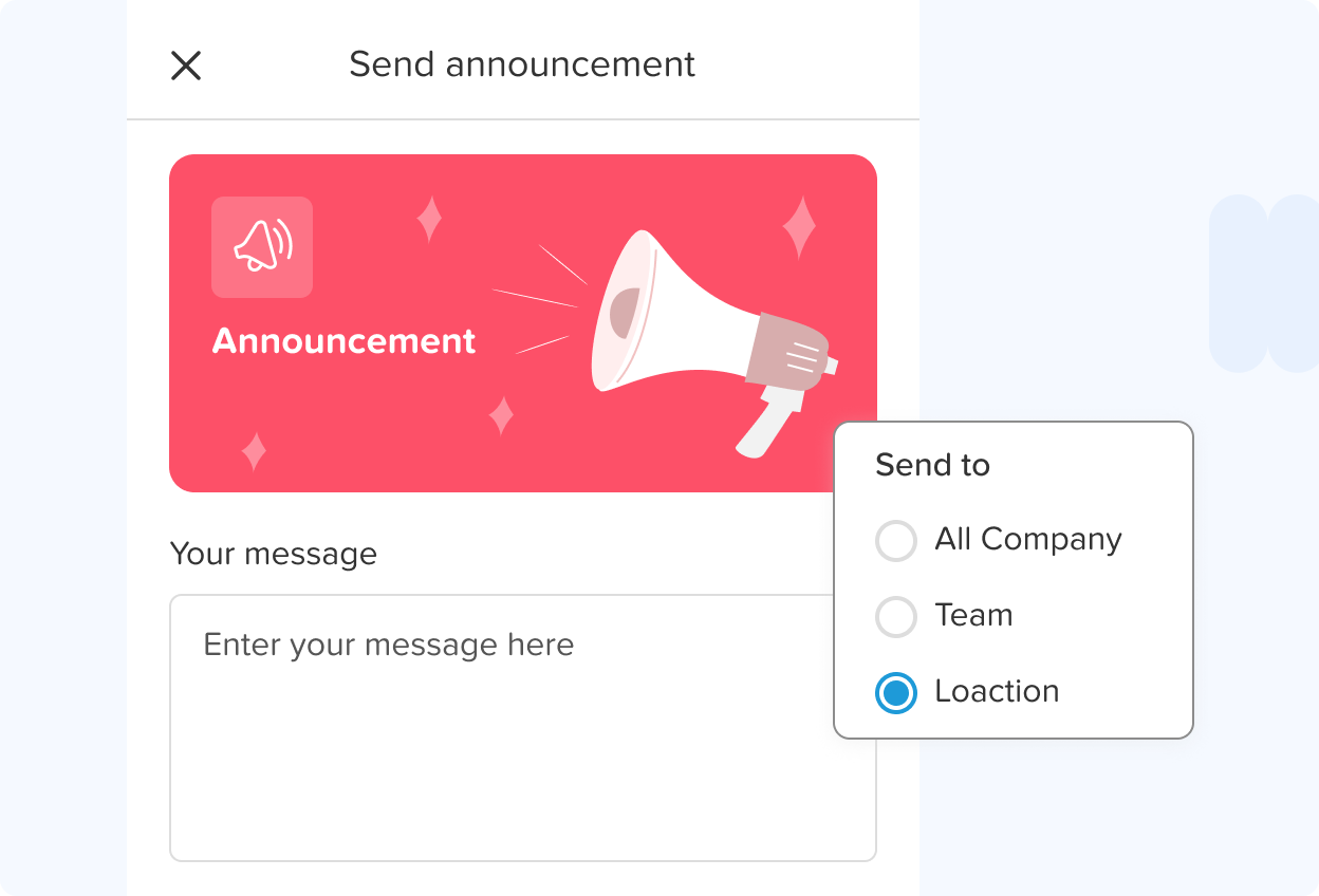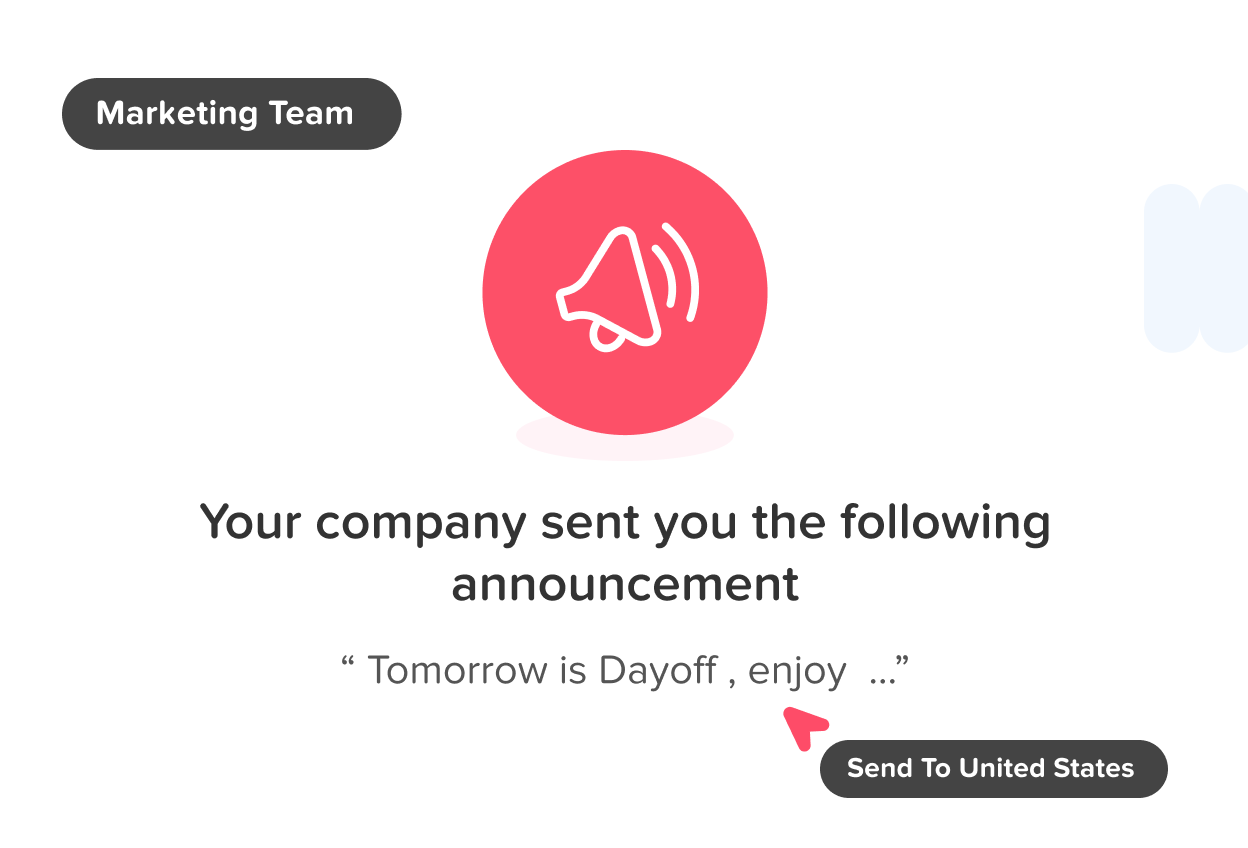 Day Off's Announcements allow targeted messages to the whole company, specific teams, or locations for precise and quick communication.