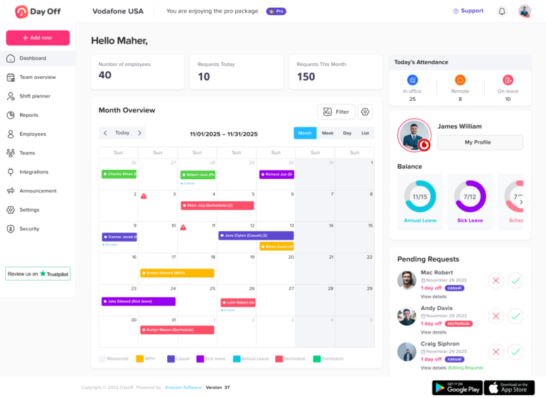 - Managers can easily approve requests and plan team availability