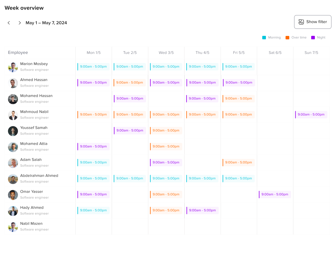 Improve planning and productivity: Managers can see who is available on any given day, which helps with shift planning, meeting scheduling, and workload distribution.