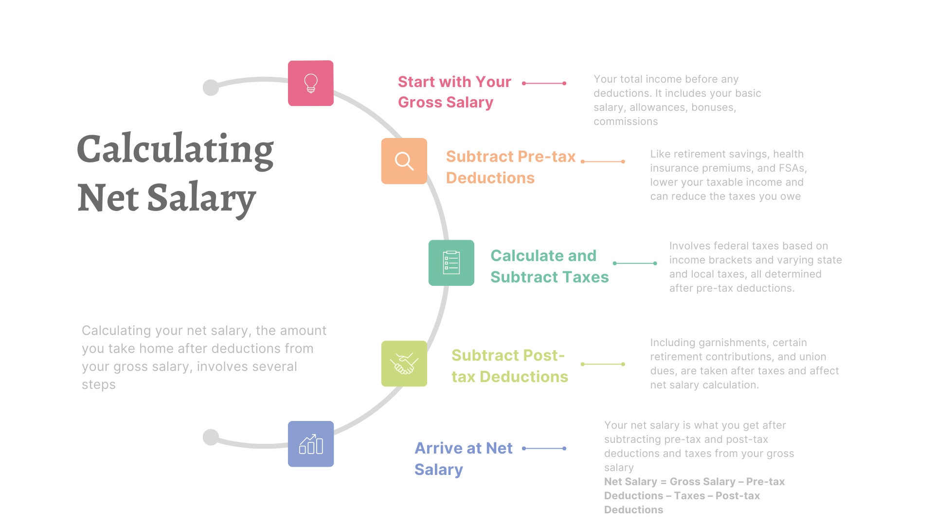 Calculating your net salary accurately requires a systematic approach to ensure that all components of your income and deductions are accounted for. Below is a detailed explanation of each step to guide you through determining your take-home pay.