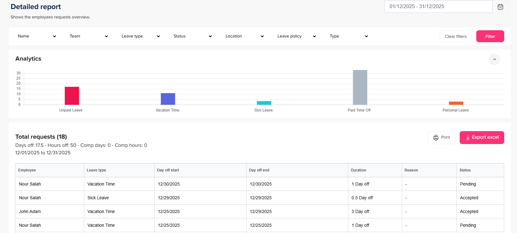 Over time, Day Off provides valuable data that can be reviewed to identify trends. HR teams can analyze approval and denial patterns across departments, managers, or time periods.