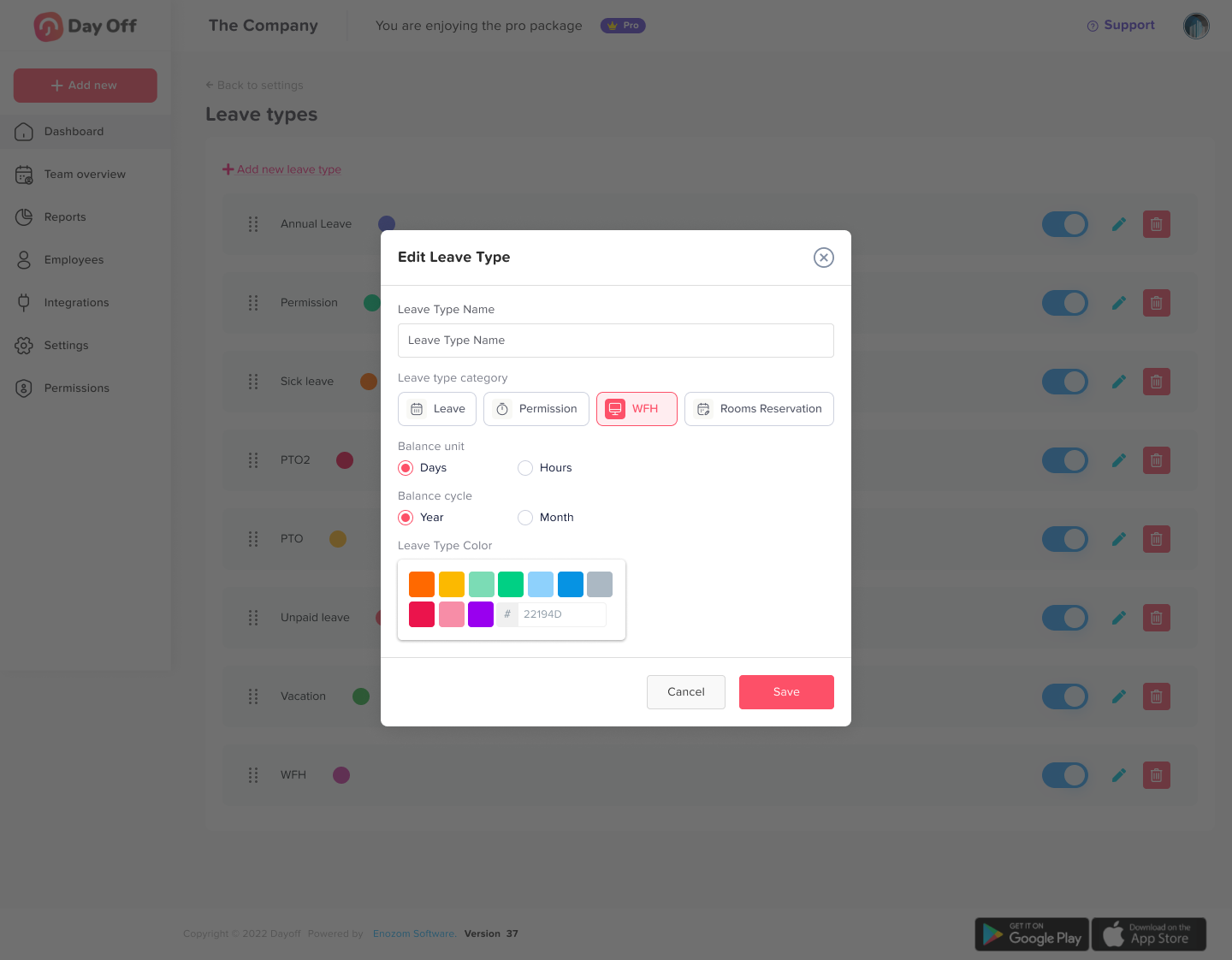 Limit the number of employees off per team