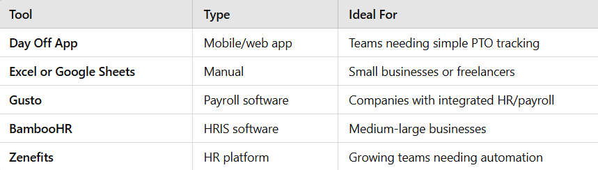 For a user friendly PTO tracking experience, consider tools like Day Off, which simplify accruals and leave management for everyone involved.