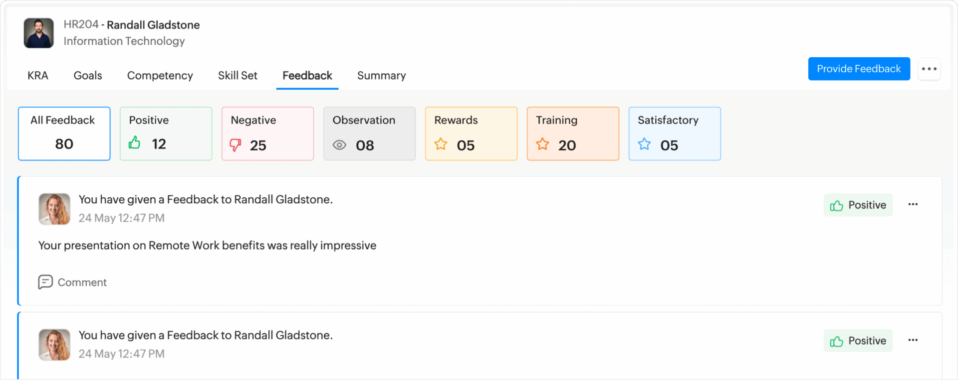 Set goals, conduct reviews, and provide feedback through structured workflows.