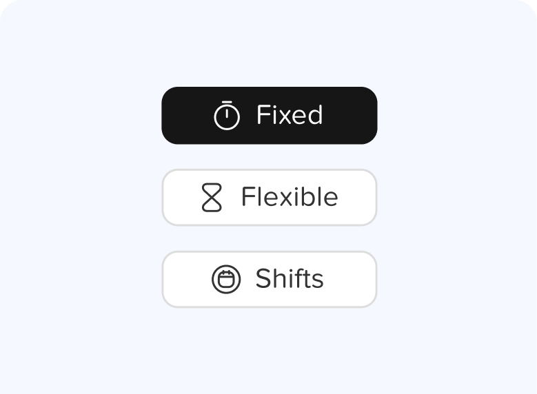 Set working days, hours, and rotating shifts, and assign each employee to a schedule that fits their role.