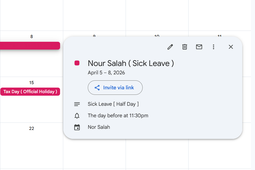 - Any updates, edits, or cancellations in Day Off will sync automatically