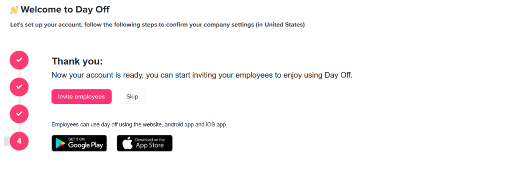 By following these steps, you create and configure your company account from start to finish. Once completed, your workspace is fully set up, and your team can begin managing time off in a clear and organized way.