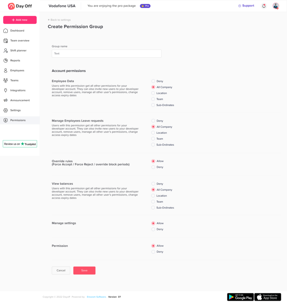 You can create and customize roles in Day Off to control what each user can access and manage.