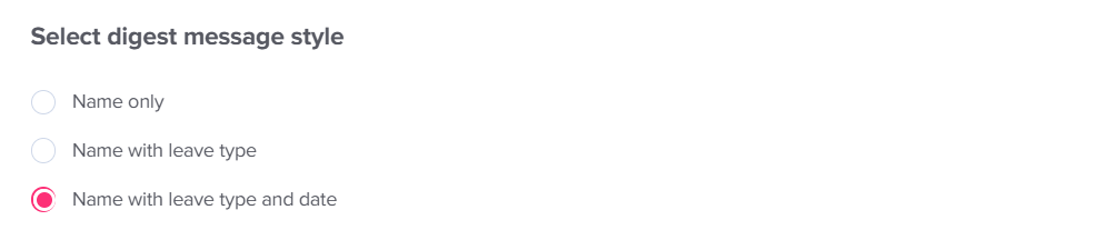 • Name with leave type: Adds context such as vacation or sick leave