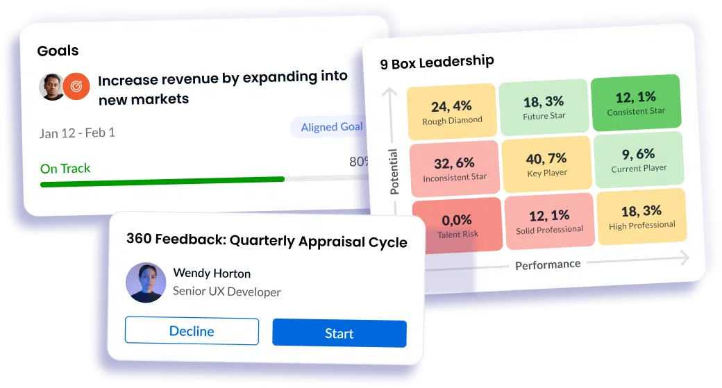 360-Degree Feedback: Enables peers, managers, and self-reviews for a holistic view.