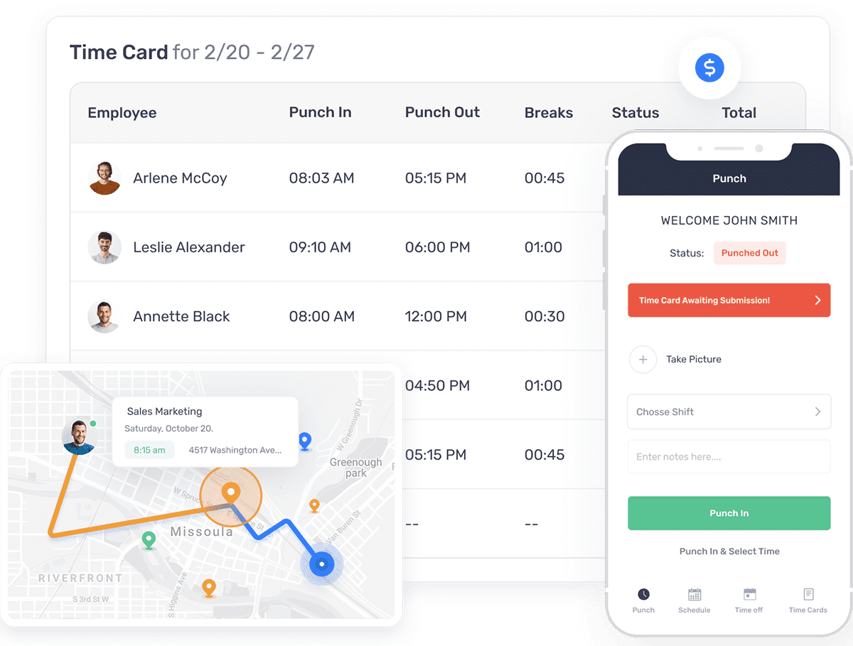 Best for: Field teams needing strict time tracking with light PTO needs.