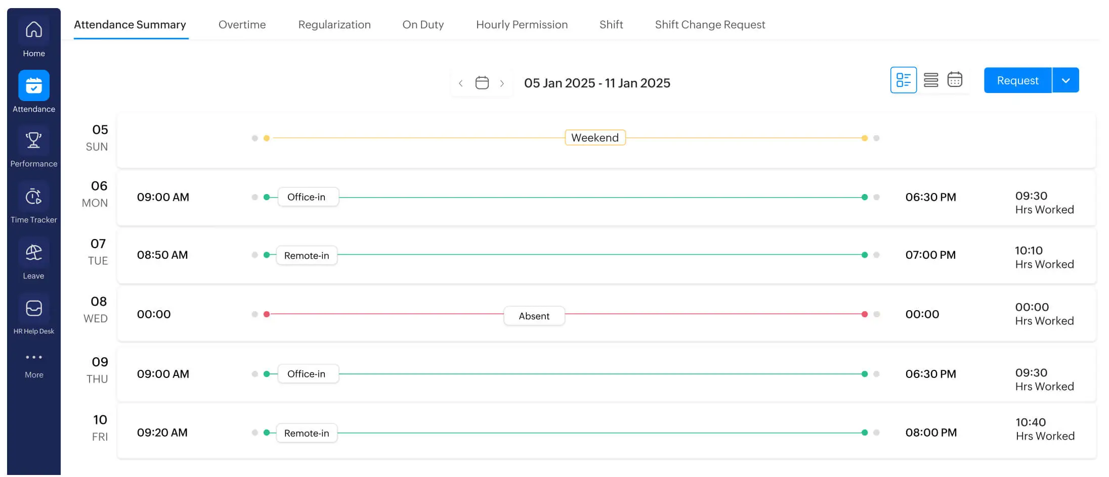 Zoho People offers a variety of HR features, including time off management, time tracking, onboarding, and attendance. It’s highly affordable and integrates well with other Zoho apps. However, its UI feels dated, and it lacks some deeper features like granular PTO audits or flexible mobile approval workflows.