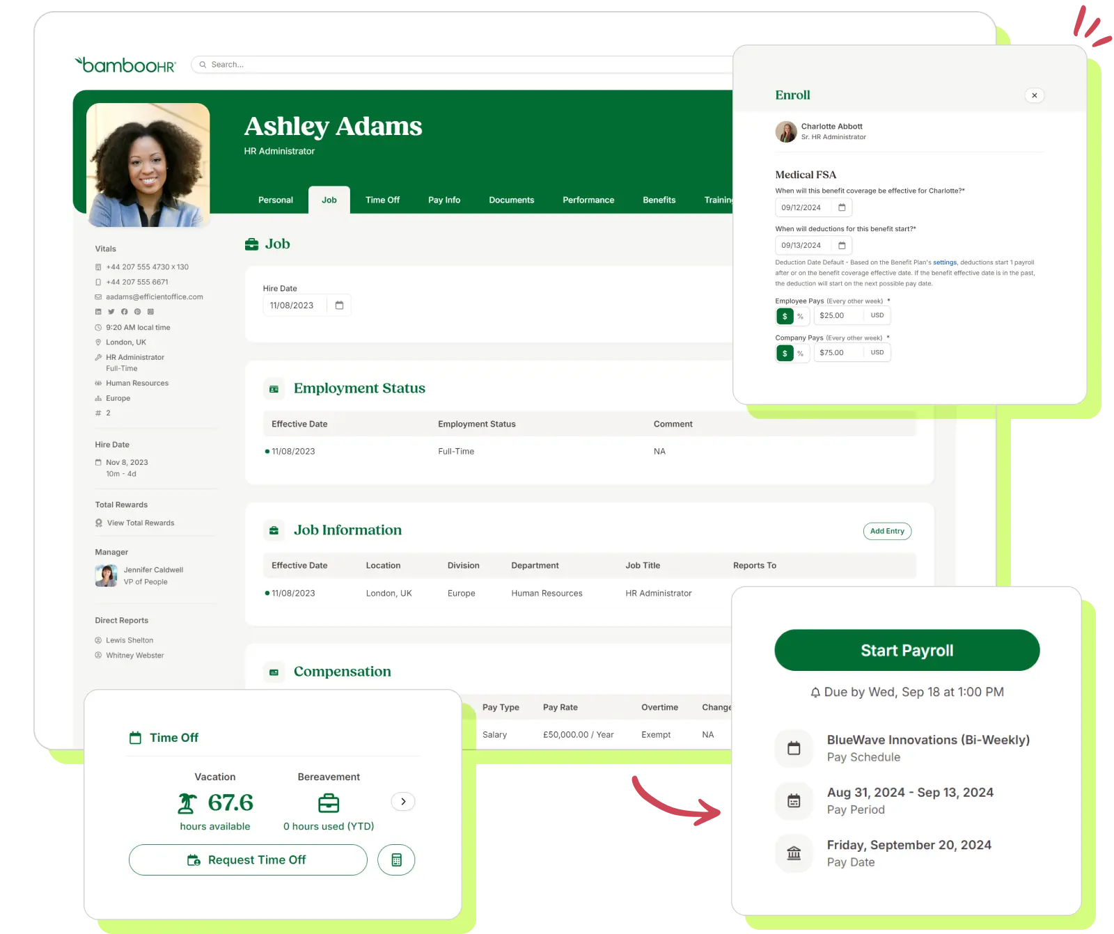BambooHR is a popular HR management platform with advanced time off tracking capabilities. It’s particularly well suited for companies that need detailed reporting and analytics.