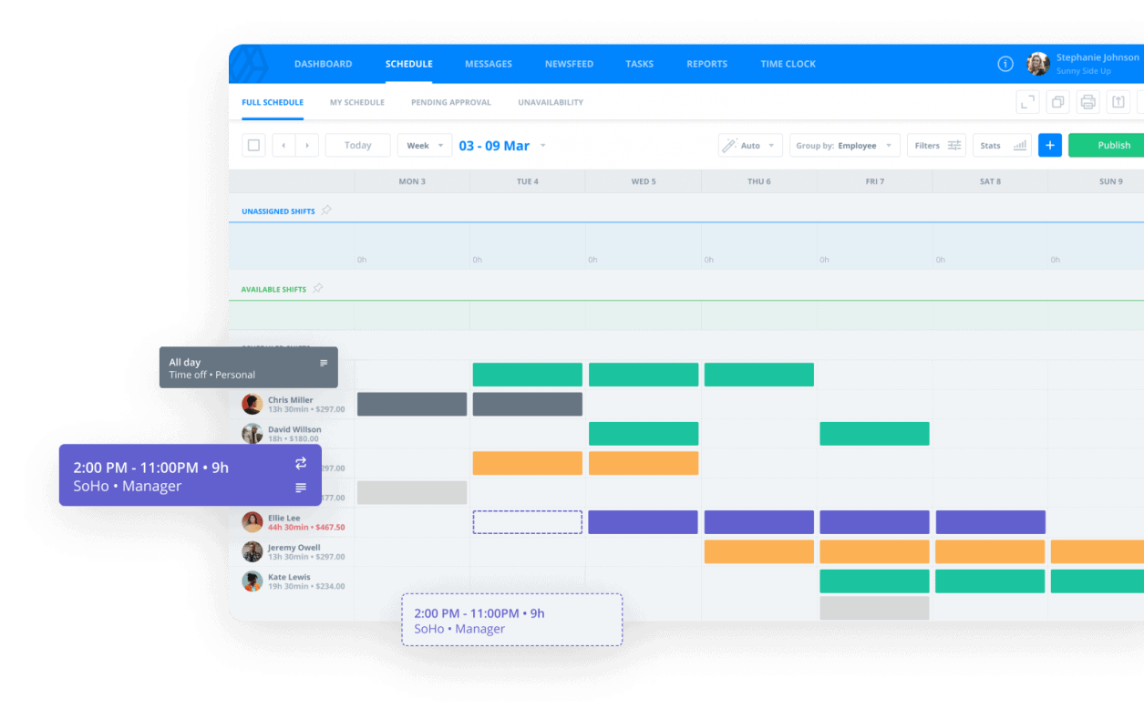 Why It Stands Out: Deputy is perfect for businesses needing flexible and dynamic shift management. It offers features like auto scheduling based on employee availability and compliance management to streamline operations.