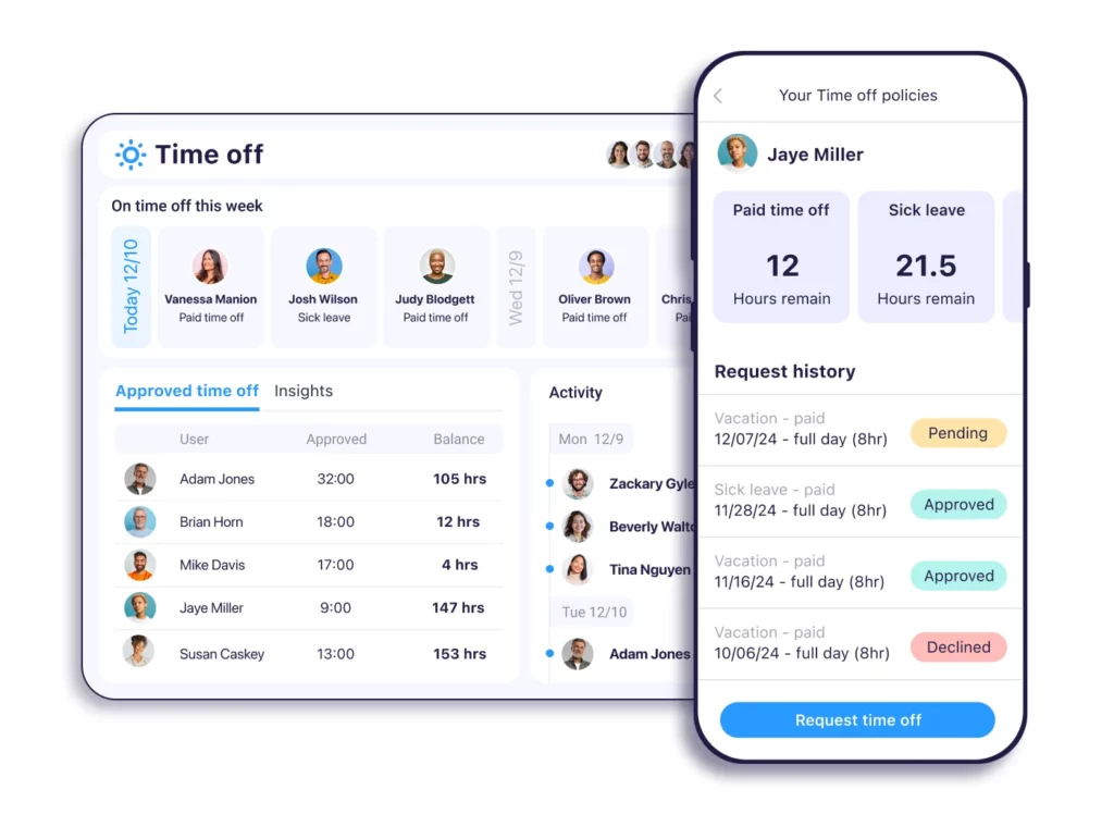 Because these features are integrated within a single platform, managers can coordinate scheduling, communication, and time off management from one system.
