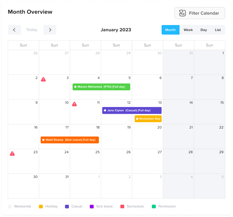 This feature helps teams coordinate better and maintain productivity even when multiple employees take leave.