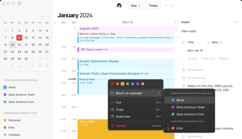 Google Calendar allows teams to create and manage multiple shared calendars for different purposes. This makes it easy for organizations to organize events, projects, and team availability in one place.