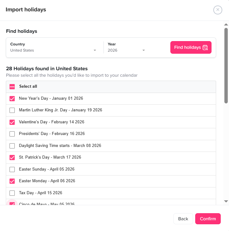 Because employment standards differ across provinces, flexibility is essential. Day Off allows businesses to assign province-specific holidays, configure local leave policies, and adjust rules easily as regulations evolve, making it ideal for multi-location or remote teams.