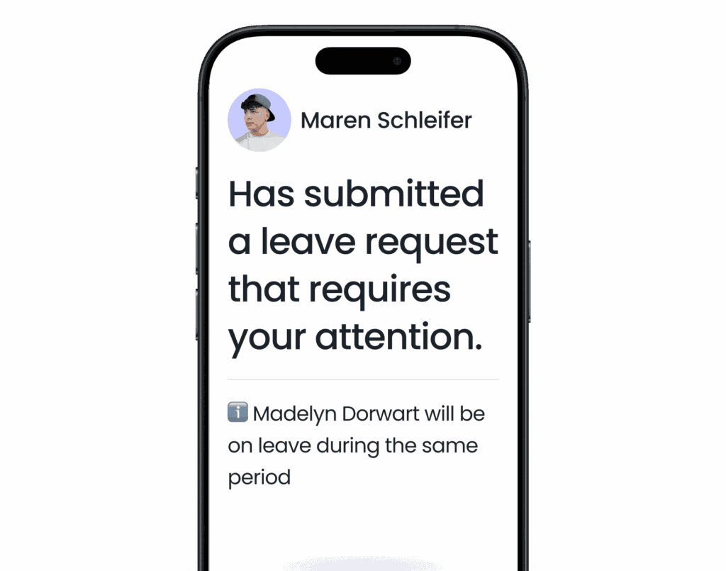 Slack or Microsoft Teams notifications keep everyone informed without forcing them to log into another tool. Managers are alerted to new requests, and employees receive instant updates on approvals or changes.