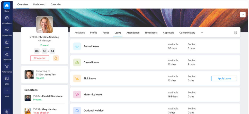 Zoho People offers a broad HR platform at a relatively affordable price point. Leave management is one of its core modules, supported by attendance tracking, employee records, and workflow automation.