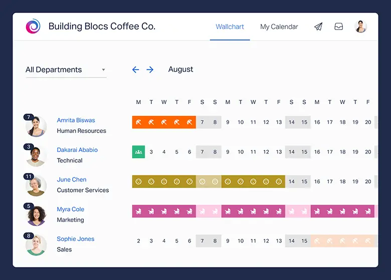 • Timetastic emphasizes visual simplicity through its wallchart and works best in environments with consistent, uncomplicated leave structures.