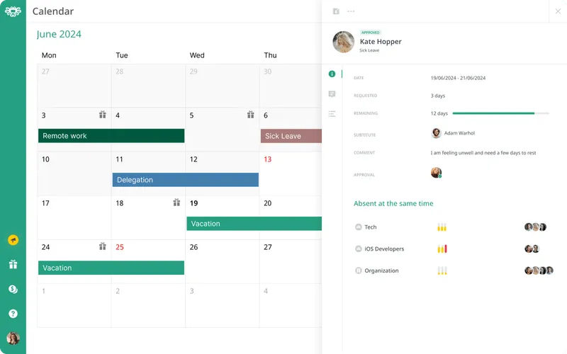 Reporting features allow HR teams to generate overviews, identify patterns in absence trends, track seasonal peaks, and ensure compliance with company policies. This data is helpful for resource planning, budgeting, and understanding team wellness.