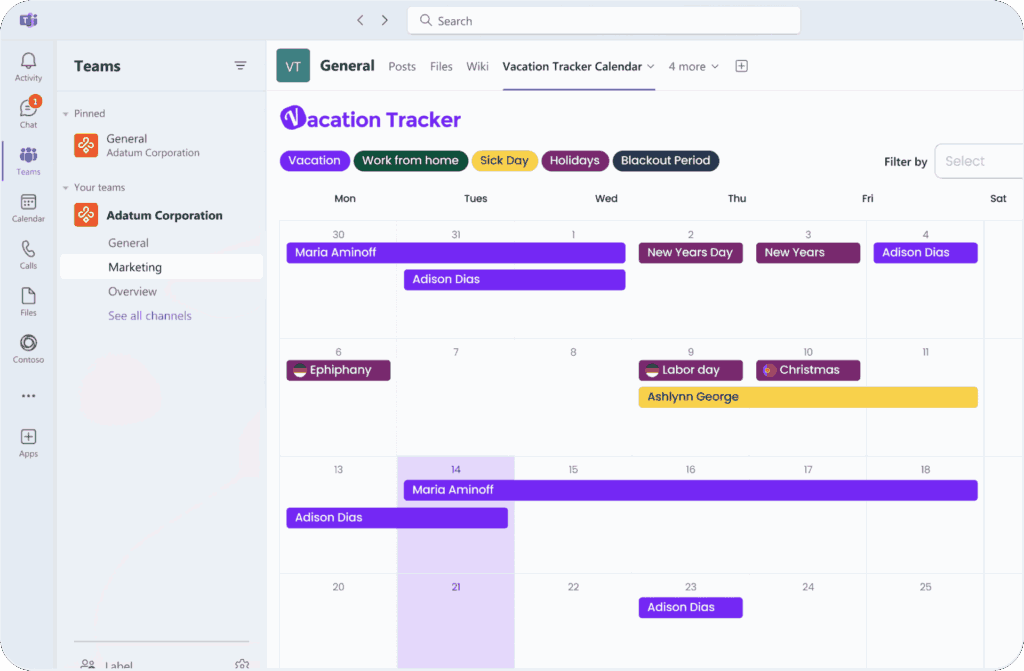 Vacation Tracker is one of the most popular leave management tools designed specifically for distributed teams. It integrates directly with collaboration tools like Slack, Microsoft Teams, and Google Workspace, allowing employees to request leave without switching platforms.