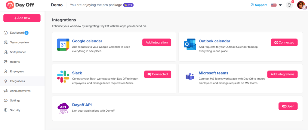 Day Off integrates with several tools that teams already use daily.